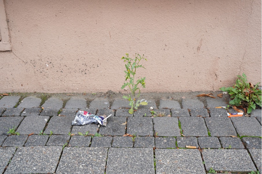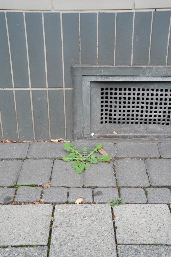 Urban Glitches focuses on plants that wildly grow in the city despite its hostile architecture. Plants that appear in cracks, along roadsides and in neglected urban spaces which often remain unnoticed in everyday life. From an anthropocentric perspective, these plants are considered “weeds”, because they disturb the cityscape, but we shifted our focus on the fragility and subversive nature of those urban greens. Surrounded by rough concrete and heavy bricks, the plants we found looked almost pitiful; fragile organisms overpowered by architectural grids. A marginalized minority whose home was colonized by another species. The fact that they do grow and survive, on the other hand, evokes the impression that they are surprisingly strong and subversive. Those two opposite traits, fragility and subversiveness, were the key motifs of our following field research phase.